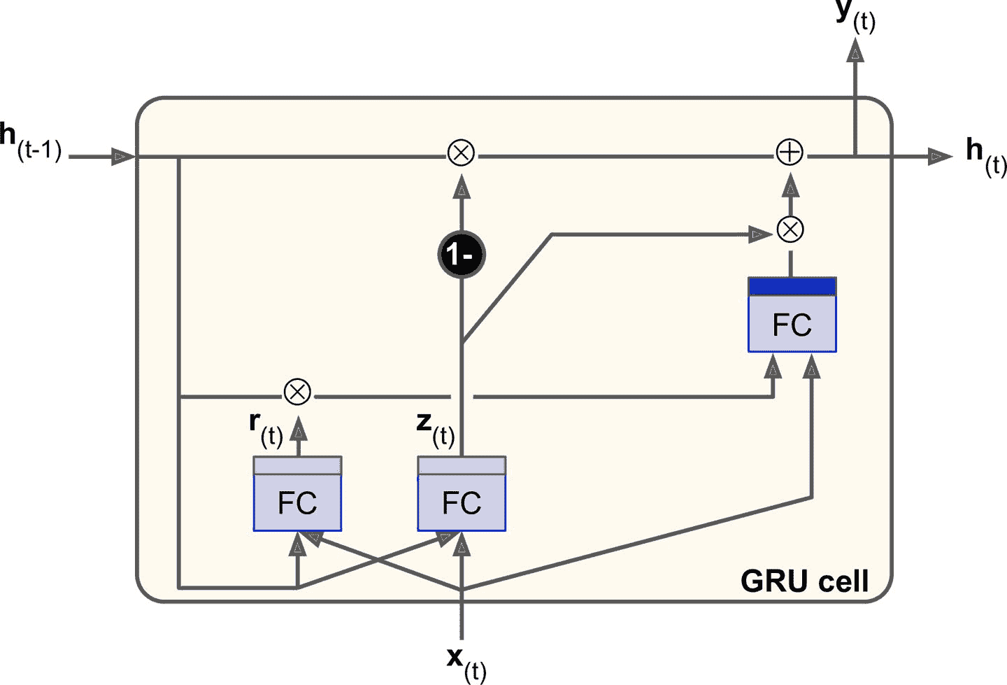 GRU 单元取消了输出门,每个时间步输出全态向量。但是,增加了一个控制门