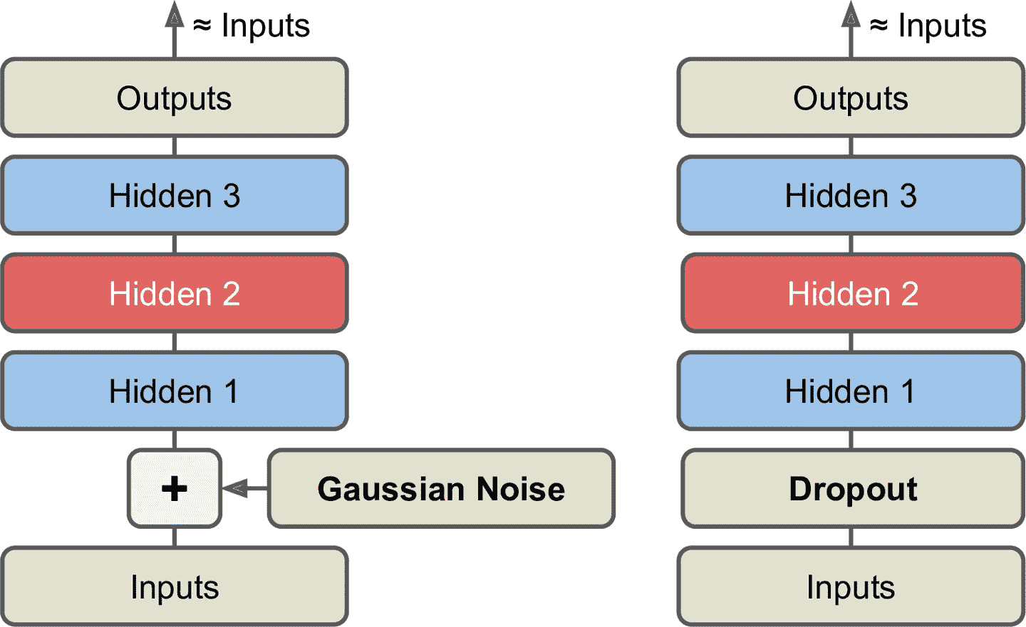 添加的噪音在每个级别都不同。每个噪音输入包含一个单独的包含高斯噪音的特征映射,广播到所有特征映射上(给定级别),然后在添加前用每个特征的缩放因子缩放(这是图 17-20 的框 B)。