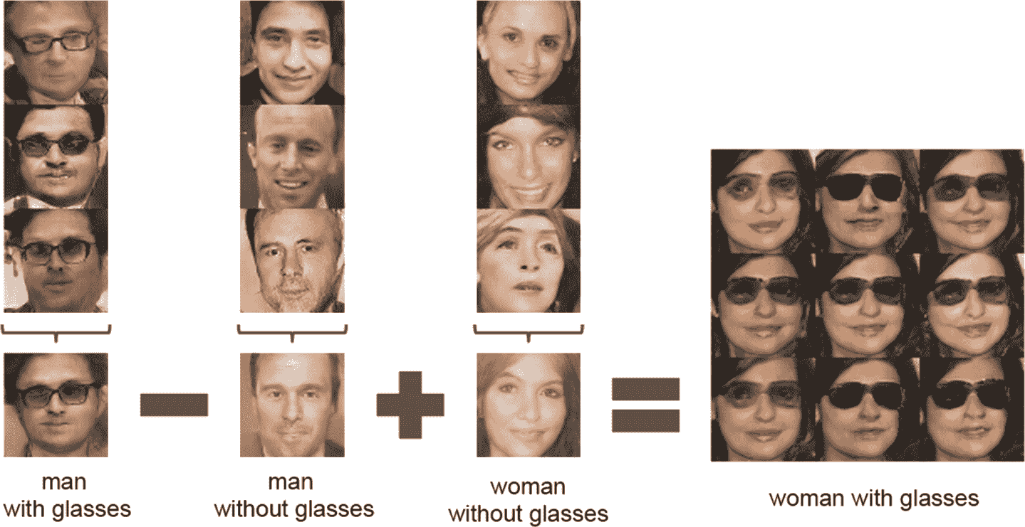 图 17-18 面部的向量运算(来自 DCGAN 论文的图 7)