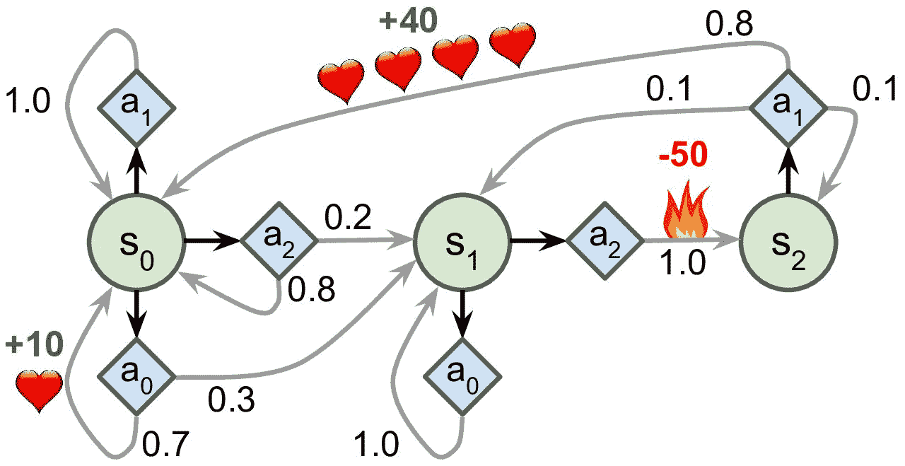 这个策略可以是你能想到的任何算法,它甚至可以是非确定性的。事实上,在某些任务中,策略根本不必观察环境!举个例子,例如,考虑一个真空吸尘器,它的奖励是在 30 分钟内捡起的灰尘数量。它的策略可以是每秒以概率p向前移动,或者以概率1-p随机地向左或向右旋转。旋转角度将是-r和+r之间的随机角度,因为该策略涉及一些随机性,所以称为随机策略。机器人将有一个不确定的轨迹,它保证它最终会到达任何可以到达的地方,并捡起所有的灰尘。问题是:30 分钟后它会捡起多少灰尘?