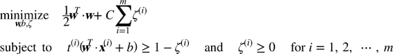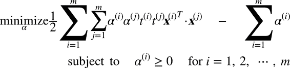 硬间隔和软间隔都是线性约束的凸二次规划优化问题。这些问题被称之为二次规划(QP)问题。现在有许多解决方案可以使用各种技术来处理 QP 问题,但这超出了本书的范围。一般问题的公式在公式 5-5 给出。